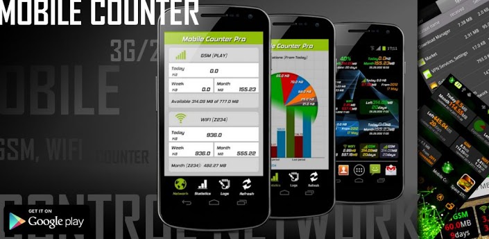 Mobile Counter Pro - 3G, WIFI для Android – качественное программное обеспечение специально создано для эффективного отслеживания расходов вашего трафика, при использовании мобильных устройств работающих на операционной системе андроид. Скачать Mobile Counter Pro - 3G, WIFI для Android вы можете здесь.