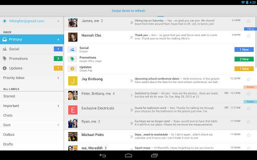 Для того, чтобы использовать приложение Gmail скачать на Android, дополнительная настройка вашего мобильного устройства не потребуется. Для входа в программу нужно только применить свою учетную запись в Gmail. Приложение делает работу с почтой простой и удобной. Чтобы следить за поступлением писем в папку «Входящие», вам не нужно будет постоянно обновлять страницу. Уведомления о том, что пришло новое письмо вы увидите в строке состояния, поэтому ни одно новое письмо не останется без вашего внимания.